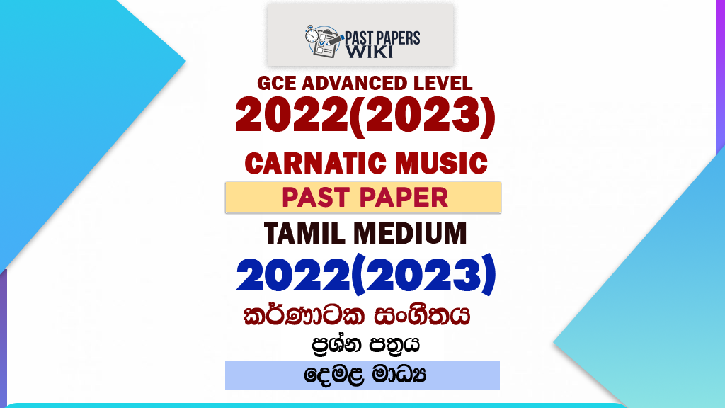Download 2023(2024) A/L Carnatic Music Past Paper Tamil Medium as a PDF file. 2023 AL Carnatic Music paper published by Department of Examinations, Sri Lanka. You can download 2023 A/L Past Paper using the link below. It’s free to download. We have a collection of past papers for the A/L Carnatic Music exam.