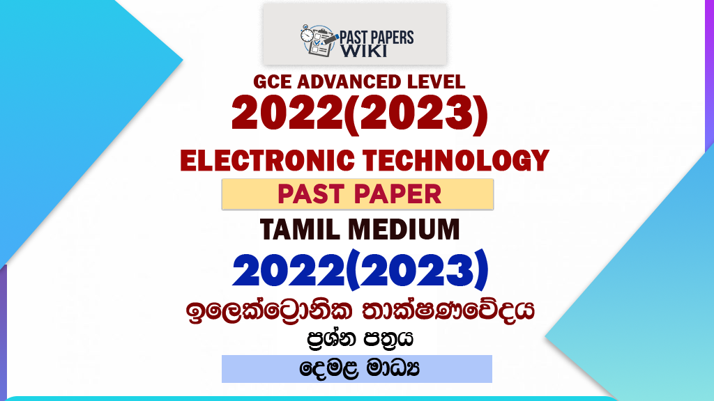 Download 2023(2024) A/L Electronic Technology Past Paper Tamil Medium as a PDF file. 2023 AL Electronic Technology paper published by Department of Examinations, Sri Lanka. You can download 2023 A/L Past Paper using the link below. It’s free to download. We have a collection of past papers for the A/L Electronic Technology exam.