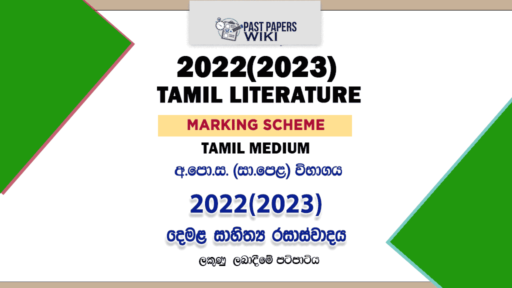 Download 2022(2023) O/L Tamil Literature Marking Scheme in Tamil Medium. MCQ, Structured, and essay official answers are available with this PDF file. Tamil Literature Marking Scheme can download using the Link Below. It’s free to download. We have a large collection of previous Marking Scheme from the O/L Tamil Literature subject. You Can Check It Out.