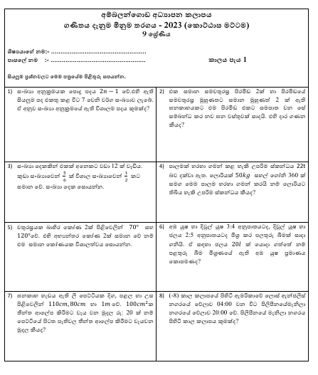 Download Division Level 2023 Grade 09 Ganitha Danuma Minuma Paper published by Ambalangoda Zonal Education Office. You can download the Division Level Grade 09 Ganitha Danuma Paper as a PDF file.