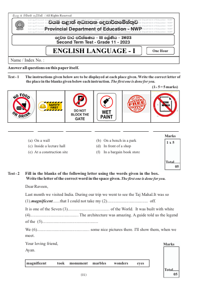 2023 North Western Province Grade 11 English 2nd term test paper download in Sinhala medium. You can download the NWP term test paper as a PDF from the link below.
