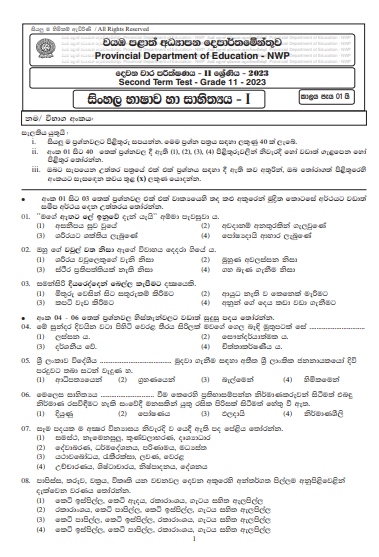 North Western Province (NWP) Grade 11 Sinhala Second Term Test Paper 2023(2024)
