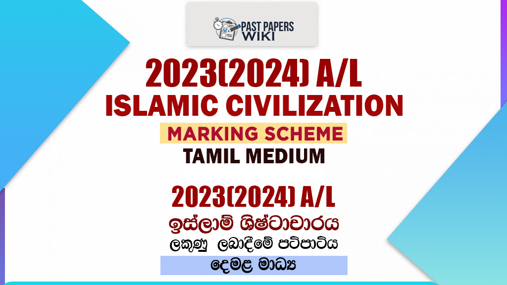 Download 2023(2024) A/L Islamic Civilization Marking Scheme in Tamil Medium. You can find the 2023(2024) AL Islamic Civilization answers sheet as a PDF file from the link below. It’s free to download. We have a massive collection of previous A/L Islamic Civilization marking schemes. You can also look at it.