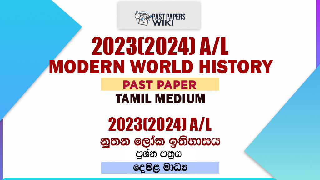 Download 2023(2024) A/L Modern World History Past Paper in Tamil Medium. Get the official A/L paper PDF for free, conducted by the Department of Examinations, Sri Lanka. We have a collection of past papers for the A/L Modern World History exam.