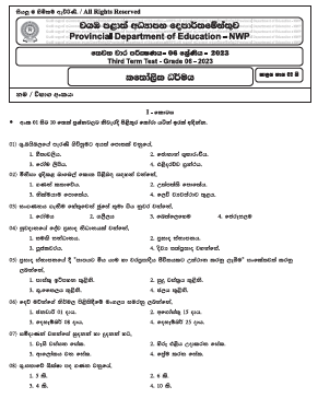 North Western Province Grade 06 Catholic 3rd term test past paper with answers 2023(2024) download in Sinhala medium. You can download the NWP term test paper as a PDF file from the link below.