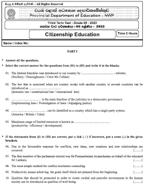 North Western Province Grade 09 Civic 3rd term test past paper with answers 2023(2024) download in English medium. You can download the NWP term test paper as a PDF file from the link below.