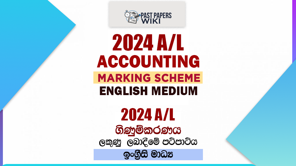 Download 2024 A/L Accounting Marking Scheme in English Medium. You can find the 2024 AL Accounting answers sheet as a PDF file from the link below. It’s free to download. We have a massive collection of previous A/L Accounting marking schemes. You can also look at it.