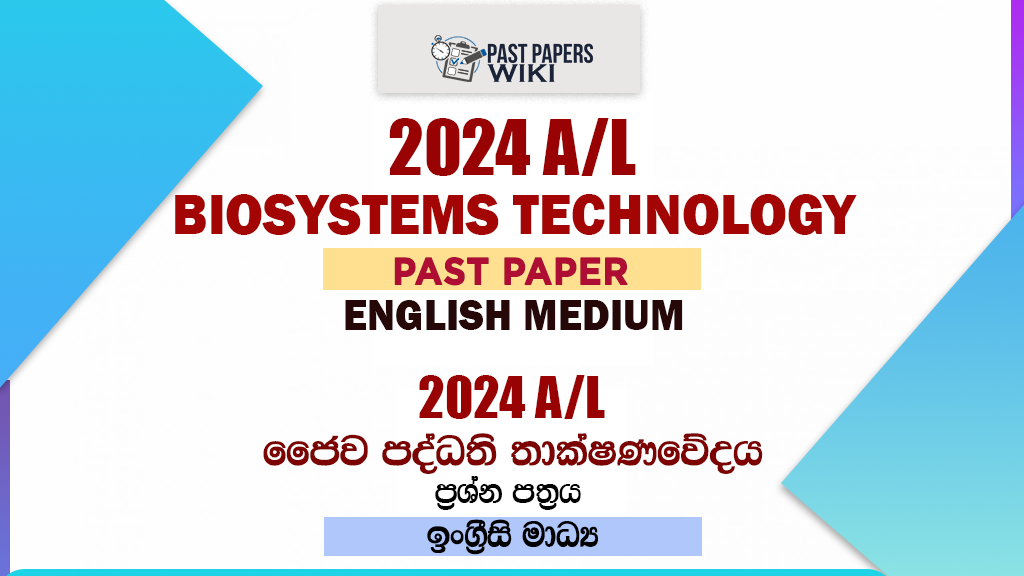 Download 2024 A/L Bio Systems Technology Past Paper in English Medium. Get the official A/L paper PDF for free, conducted by the Department of Examinations, Sri Lanka. We have a collection of past papers for the A/L Bio Systems Technology exam.