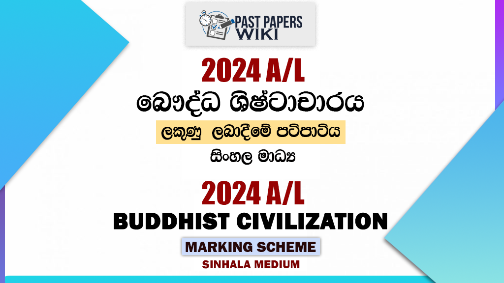 Download 2024 A/L Buddhist Civilization Marking Scheme in Sinhala Medium. You can find the 2024 AL Buddhist Civilization answers sheet as a PDF file from the link below. It’s free to download. We have a massive collection of previous A/L Buddhist Civilization marking schemes. You can also look at it.