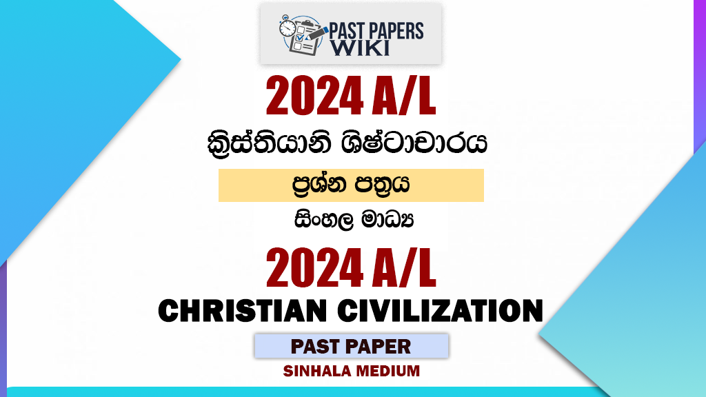Download 2024 A/L Christian Civilization Past Paper in Sinhala Medium. Get the official A/L paper PDF for free, conducted by the Department of Examinations, Sri Lanka. We have a collection of past papers for the A/L Christian Civilization exam.