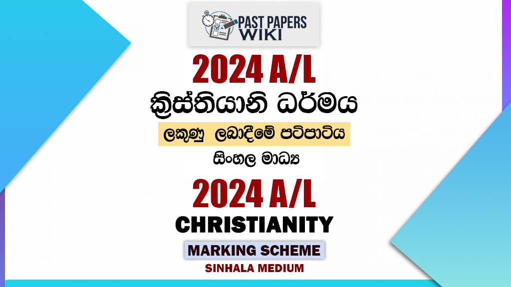 Download 2024 A/L Christianity Marking Scheme in Sinhala Medium. You can find the 2024 AL Christianity answers sheet as a PDF file from the link below. It’s free to download. We have a massive collection of previous A/L Christianity marking schemes. You can also look at it.