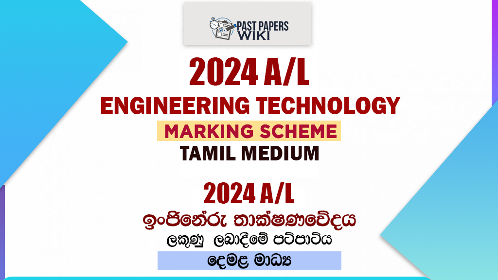 Download 2024 A/L Engineering Technology Marking Scheme in Tamil Medium. You can find the 2024 AL Engineering Technology answers sheet as a PDF file from the link below. It’s free to download. We have a massive collection of previous A/L Engineering Technology marking schemes. You can also look at it.