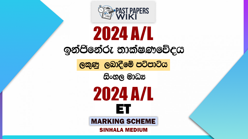 Download 2024 A/L Engineering Technology marking scheme in Sinhala Medium. You can find the 2024 AL ET answers sheet as a PDF file from the link below. It’s free to download. We have a massive collection of previous A/L ET marking schemes. You can also look at it.