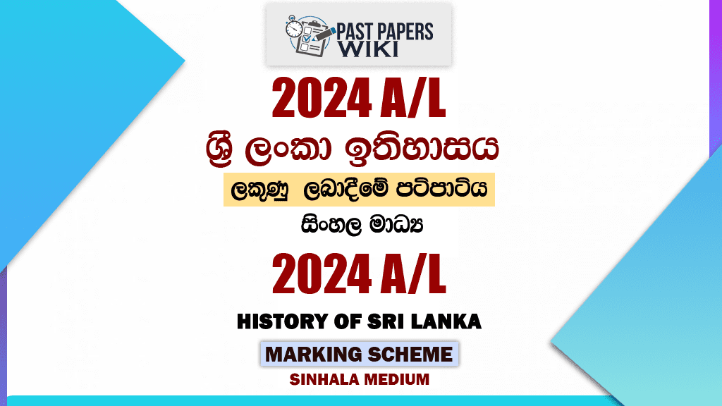 Download 2024 A/L History of Sri Lanka Marking Scheme in Sinhala Medium. You can find the 2024 AL History of Sri Lanka answers sheet as a PDF file from the link below. It’s free to download.  We have a massive collection of previous A/L History of Sri Lanka marking schemes. You can also look at it.