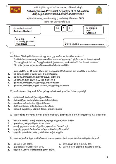2024 Sabaragamuwa Province Grade 13 Business Studies 3rd Term Test paper with answers, available for download in Sinhala medium. You can access the Sabaragamuwa Province term test paper in PDF format using the link below.