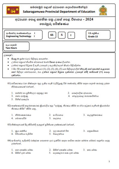 2024 Sabaragamuwa Province Grade 13 ET 3rd Term Test paper with answers, available for download in Sinhala medium. You can access the Sabaragamuwa Province term test paper in PDF format using the link below.