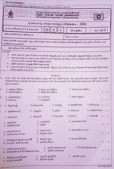 2024 Central Province Grade 13 Lanka History 3rd Term Test paper with answers, available for download in Sinhala medium. You can access the Central Province term test paper in PDF format using the link below.