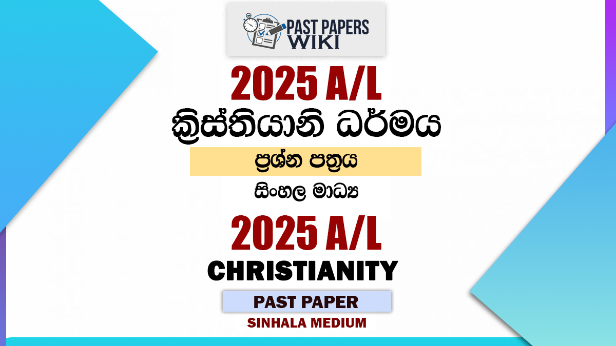 Download 2025 A/L Christianity Past Paper Sinhala Medium as a PDF file. 2025 AL Christianity paper published by the Department of Examinations, Sri Lanka. You can download 2025 A/L Past Paper using the link below. It’s free to download. We have a collection of past papers for the A/L Christianity exam.