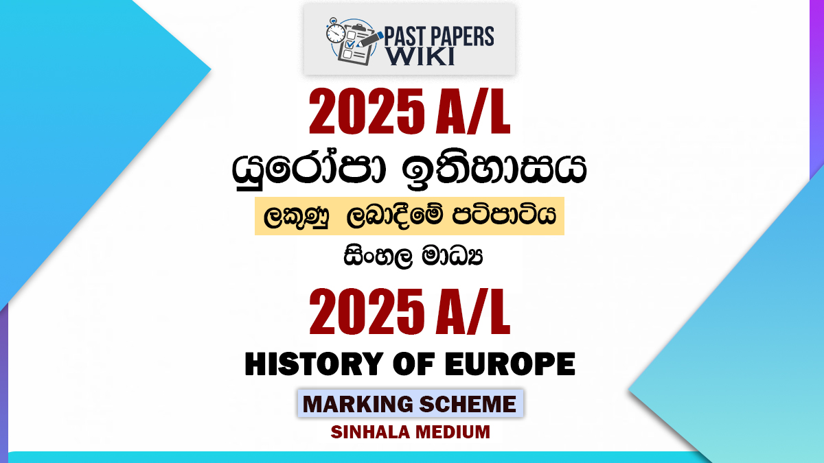 Download 2025 A/L History of Europe Marking Scheme in Sinhala Medium for free. You can easily access the 2025 AL History of Europe answer sheet in PDF format by clicking the button below.