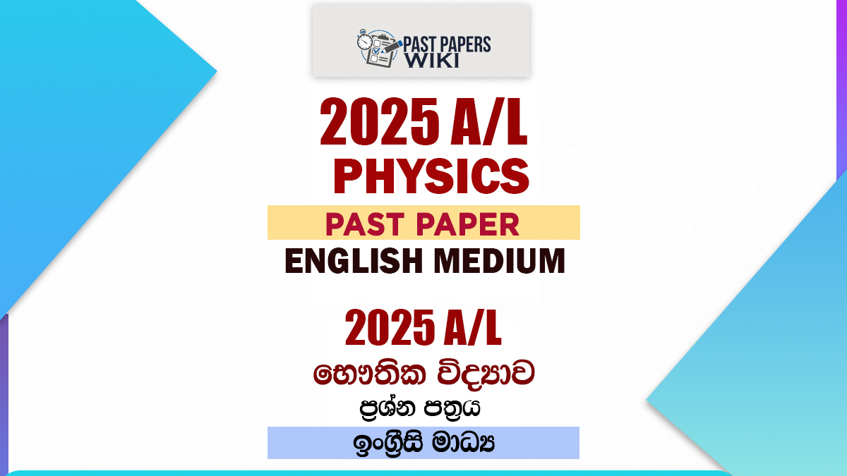 Download 2025 A/L Physics Past Paper English Medium as a PDF file. 2025 AL Physics paper published by the Department of Examinations, Sri Lanka. You can download 2025 A/L Past Paper using the link below. It’s free to download. We have a collection of past papers for the A/L Physics exam.
