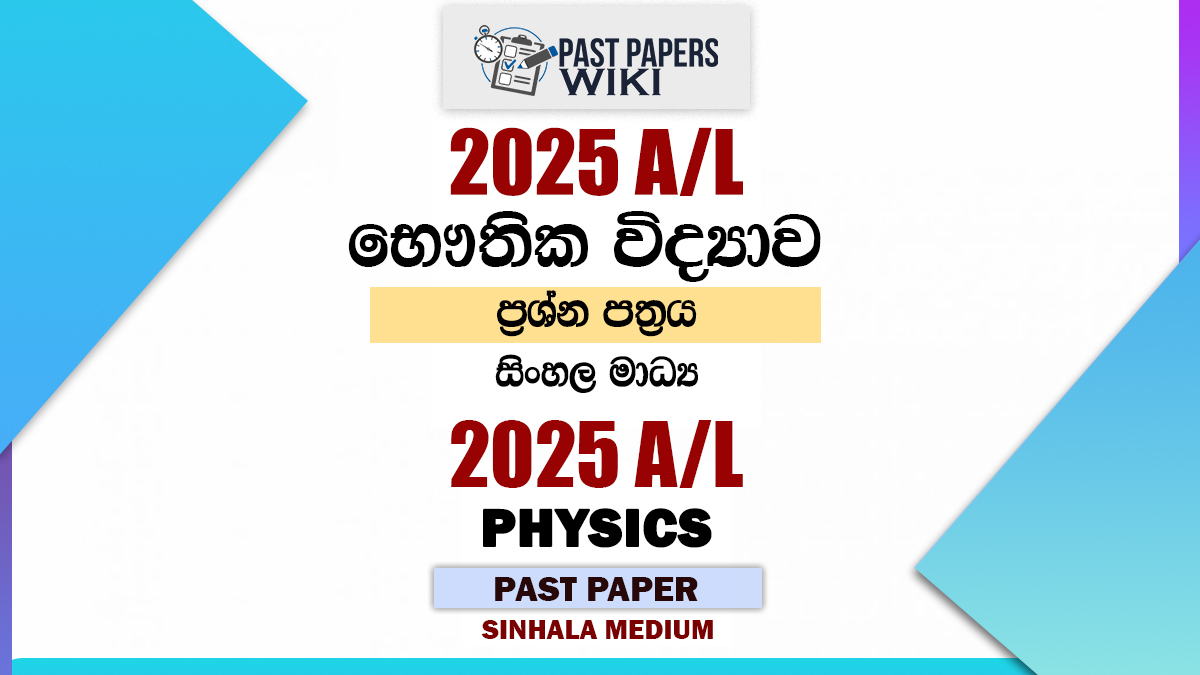 Download 2025 A/L Physics Past Paper Sinhala Medium as a PDF file. 2025 AL Physics paper published by the Department of Examinations, Sri Lanka. You can download 2025 A/L Past Paper using the link below. It’s free to download. We have a collection of past papers for the A/L Physics exam.