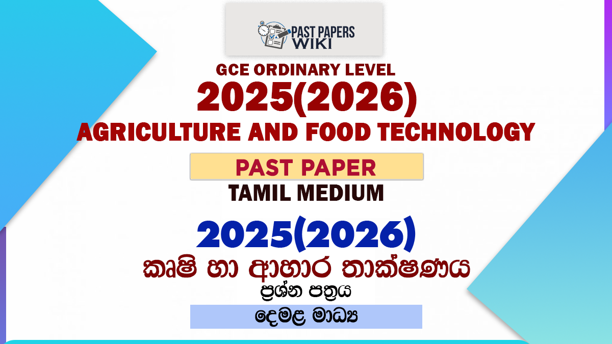 Download 2025(2026) O/L Agriculture & Food Technology Past Paper and Answers in Tamil Medium. You can download OL Agriculture Paper Part I (MCQ) and Part II using the link below. It’s free to download. We have a large collection of past papers for the O/L Agriculture & Food Technology subject. You Can Check It Out.