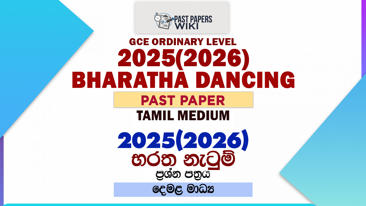 Download 2025(2026) O/L Bharatha Dancing Past Paper and Answers in Tamil Medium. You can download OL Bharatha Dancing Paper Part I (MCQ) and Part II using the link below. It’s free to download. We have a large collection of past papers for the O/L Bharatha Dancing subject. You Can Check It Out.