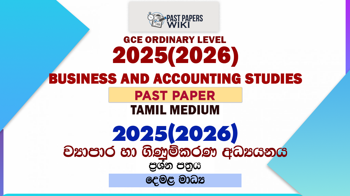 Download 2025(2026) O/L Business and Accounting Studies Past Paper and Answers in Tamil Medium. You can download OL Business and Accounting Paper Part I (MCQ) and Part II using the link below. It’s free to download. We have a large collection of past papers for the O/L Business and Accounting Studies subject. You Can Check It Out.