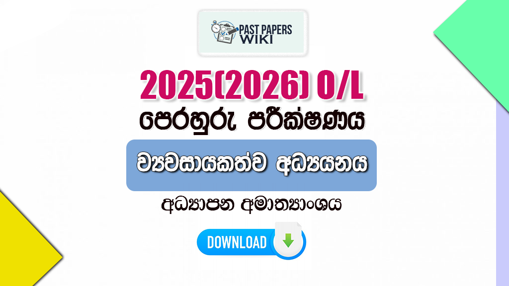 Download 2025(2026) O/L Entrepreneurship Studies model paper in Sinhala Medium, which has been released by the Ministry of Education. This model paper is specifically designed for Grade 11 Sinhala Medium students preparing for the GCE O/L examination 2025. You can download the paper using the following link below.