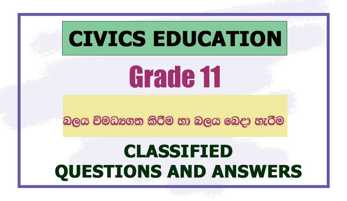 Balaya Vimadyagatha Kirima ha Balaya Bedaherima (Decentralization and Decentralization of Power) Civics Grade 11 Classified Lesson Questions and Answers PDF Download.
