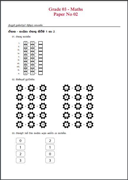 Download Grade 03 Mathematics paper No 02. The question paper is prepared in relation to the Grade 03 syllabus. Download using the Link Below. It’s free to download.