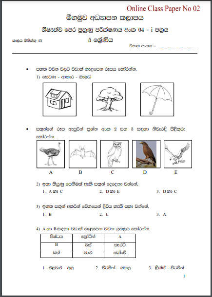 Download Grade 05 | Examination for the grade five students (Model paper) 01 – i. Prepared in accordance with the syllabus. Download using the Link Below. It’s free to download.