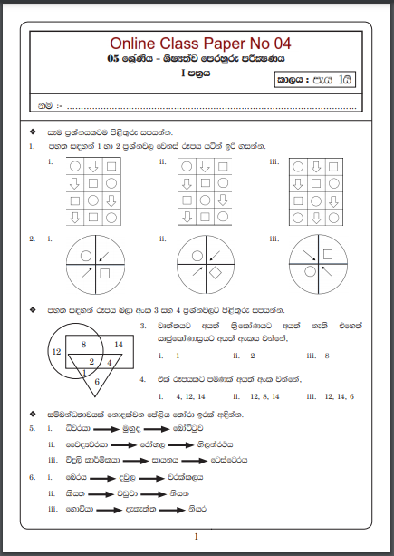 Download Grade 05 | Examination for the grade five students (Model paper) 04 – i. Prepared in accordance with the syllabus. Download using the Link Below. It’s free to download.