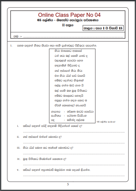 Download Grade 05 | Examination for the grade five students (Model paper) 04 – ii. Prepared in accordance with the syllabus. Download using the Link Below. It’s free to download.