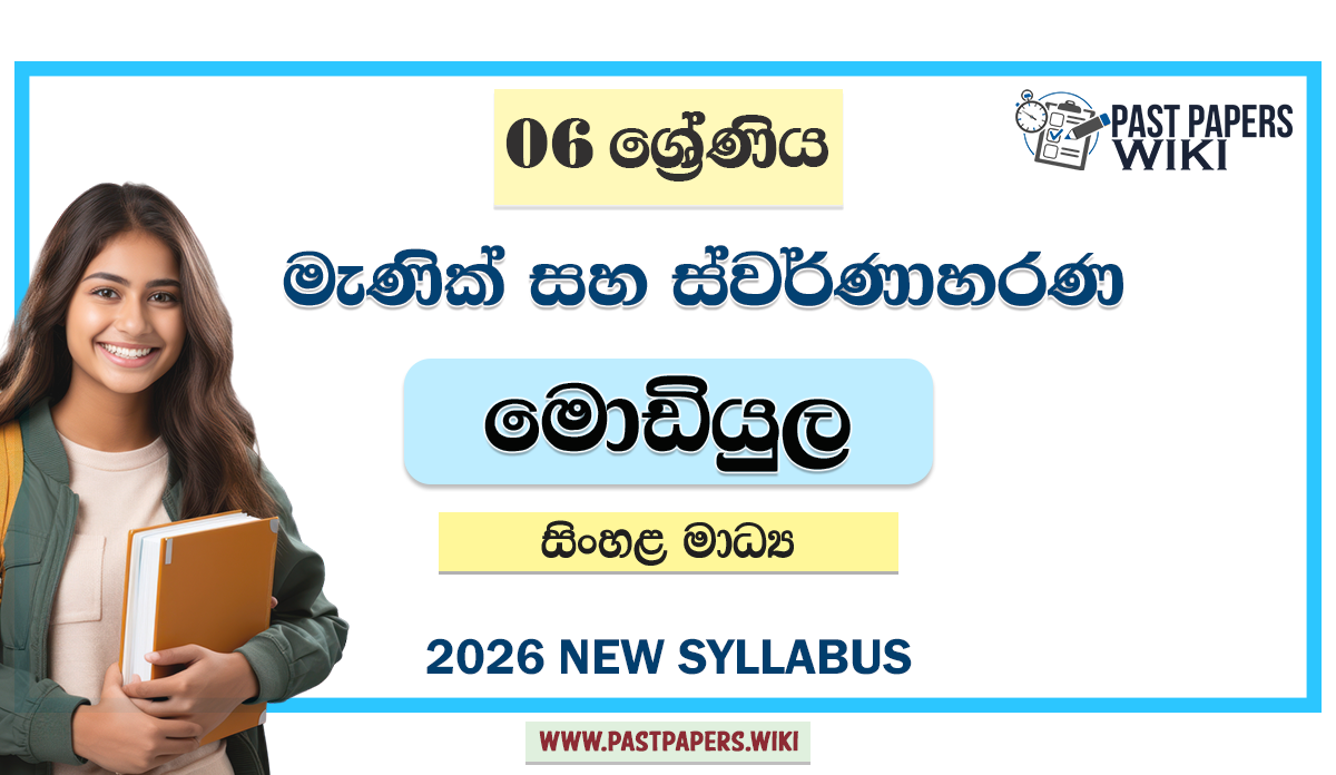 Download official Grade 06 Gem And Jewellery Module Book in Sinhala Medium, for the new national curriculum introduced in 2026. These essential learning materials, published by the National Institute of Education (NIE), are now available for all three school terms. You can download the free PDF files for the first term, second term, and third term directly from our site.