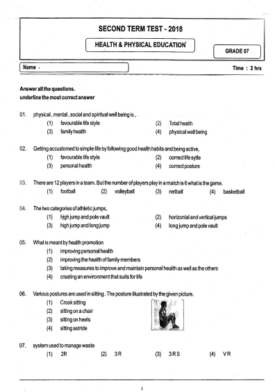 Download Grade 07 Health Paper 2018