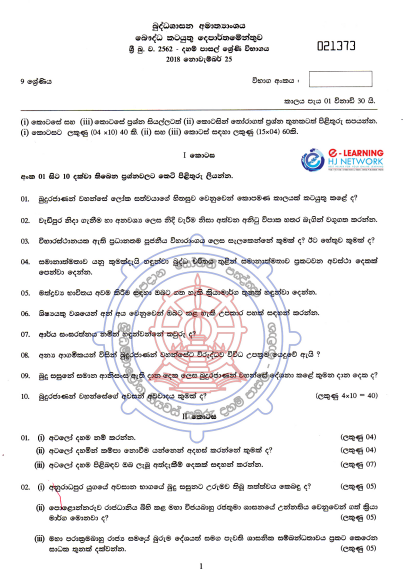 - Grade 09 Daham Pasal Exam Paper 2018