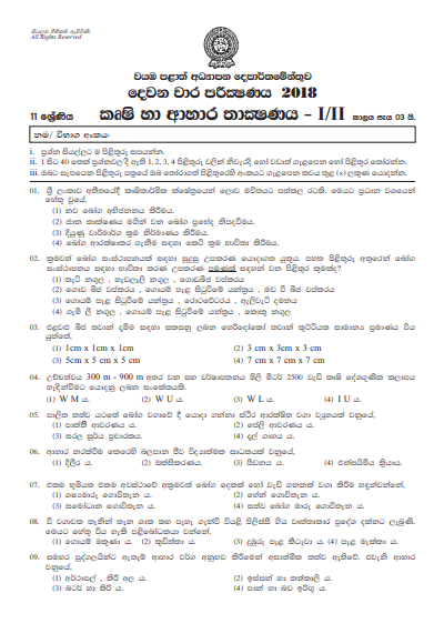 Download Grade 10 Agriculture And Food Technology paper in Sinhala Medium 2018