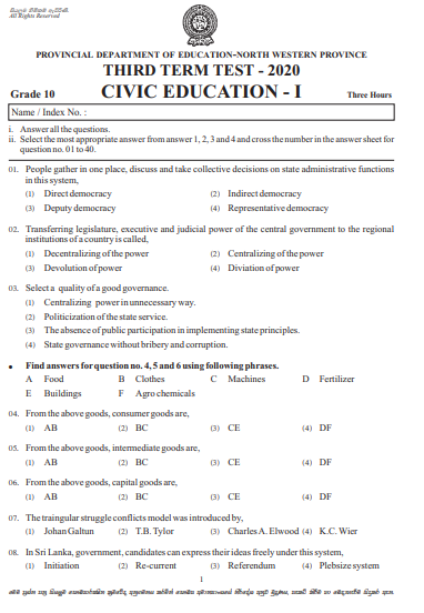 Grade 10 Civic Education 3rd term test paper 2020 in English Medium. This is the North Western’s third term test exam Paper conducted in 2020. All English Medium students can download grade 10 Civic Education past paper using the links below. It’s free to download.