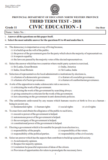 Grade 11 Civic Education 3rd term test paper 2018 in English Medium. This is the North Western’s third term test exam Paper with Answers conducted in 2018. All English Medium students can download grade 11 Civic Education Studies past paper using the links below. It’s free to download.