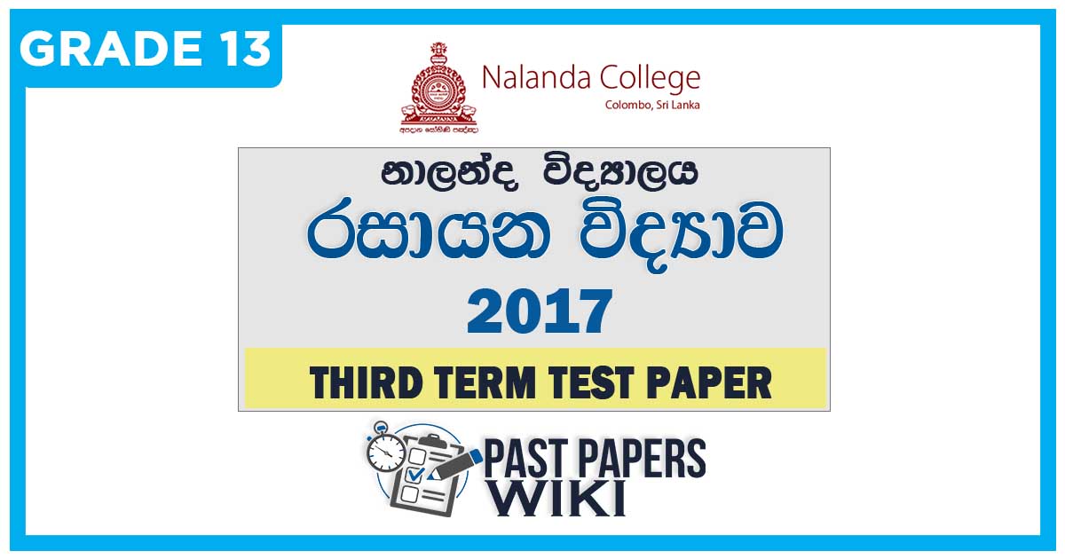 Download Nalanda College Chemistry 3rd Term Test paper 2017 in Sinhala Medium. You can download Nalanda College Chemistry paper using the following link Below. It’s free to download. We have a large collection of previous Nalanda college Term Test papers. You Can Check It Out.