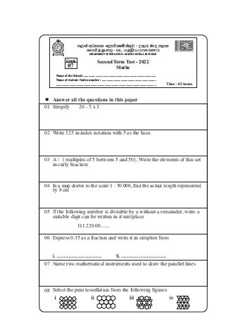2022 North Central Province Grade 07 Maths 3rd term test paper with answers in English medium. The link below lets you download the North Central Province third term test paper as a PDF file.