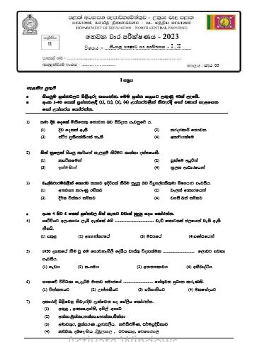 2023(2024) North Central Province Grade 11 Sinhala 3rd term test paper with answers in Sinhala medium. The link below lets you download the North Central Province third term test paper as a PDF file.