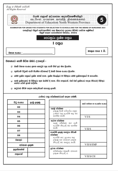 Download North Western Province 2024 (Paper 01) Grade 5 Scholarship Model Paper With Answers , published by the Provincial Education Office North Western . All Grade 5 students can access and download the model paper PDF for free using the link below.