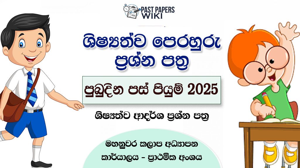 A collection of “Pubudina Pas Piyum” model papers are available on the Past Papers Wiki website to support students preparing for the Grade 5 Scholarship Examination. We extend our appreciation to the original creators and organizations for making these educational resources publicly accessible.If you have a problem with this post or PDF file, comment below or contact us on Facebook & Email (info[at]pastpapers. wiki). Share this resource with your friends! Now you can join the Past Papers Wiki community forum to discuss Model papers, marking schemes, lesson notes/short notes, and other educational matters.