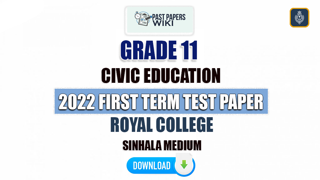 Download Colombo Royal College Grade 11 First term test Civic Education paper 2022 in Sinhala medium. Royal College Grade 11 Sinhala medium papers are available in PDF format. We have added many previous Royal College Term Test Papers and answers to this website for you. You can download it using the links given below.