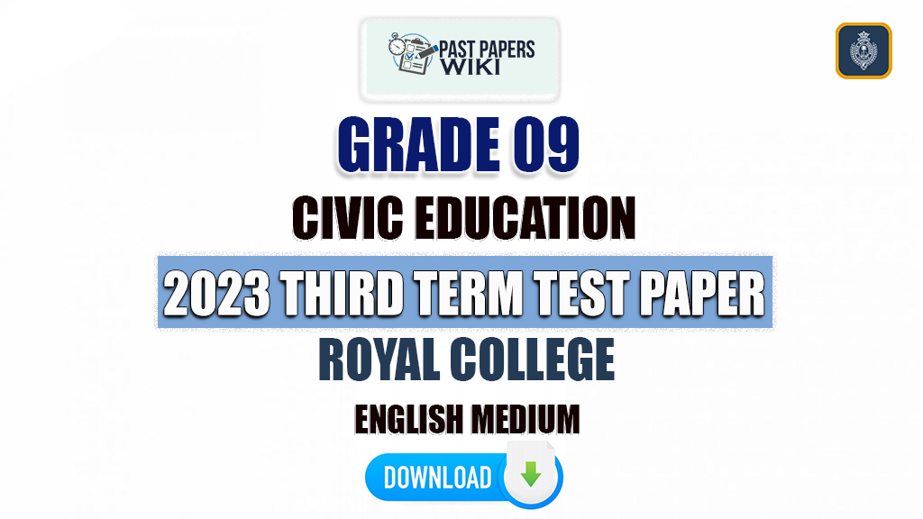 Download Colombo Royal College Grade 09 Third term test Civic Education paper 2023 in English medium. Royal College Grade 09 English medium papers are available in PDF format. We have added many previous Royal College Term Test Papers and answers to this website for you. You can download it using the links given below.