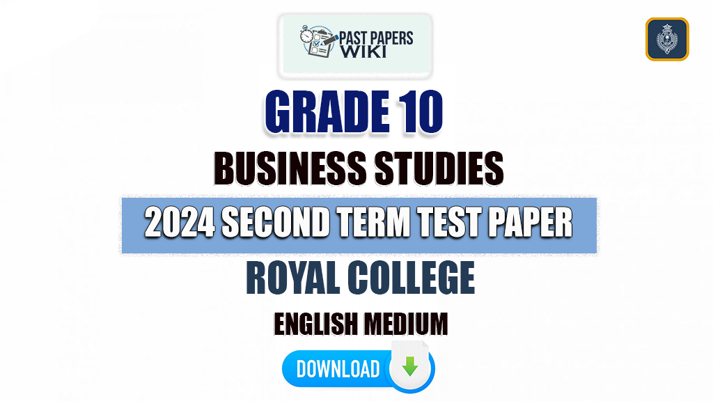 Download Colombo Royal College Grade 10 Second term test Business Studies paper 2024 in English medium. Royal College Grade 10 English medium papers are available in PDF format. We have added many previous Royal College Term Test Papers and answers to this website for you. You can download it using the links given below.