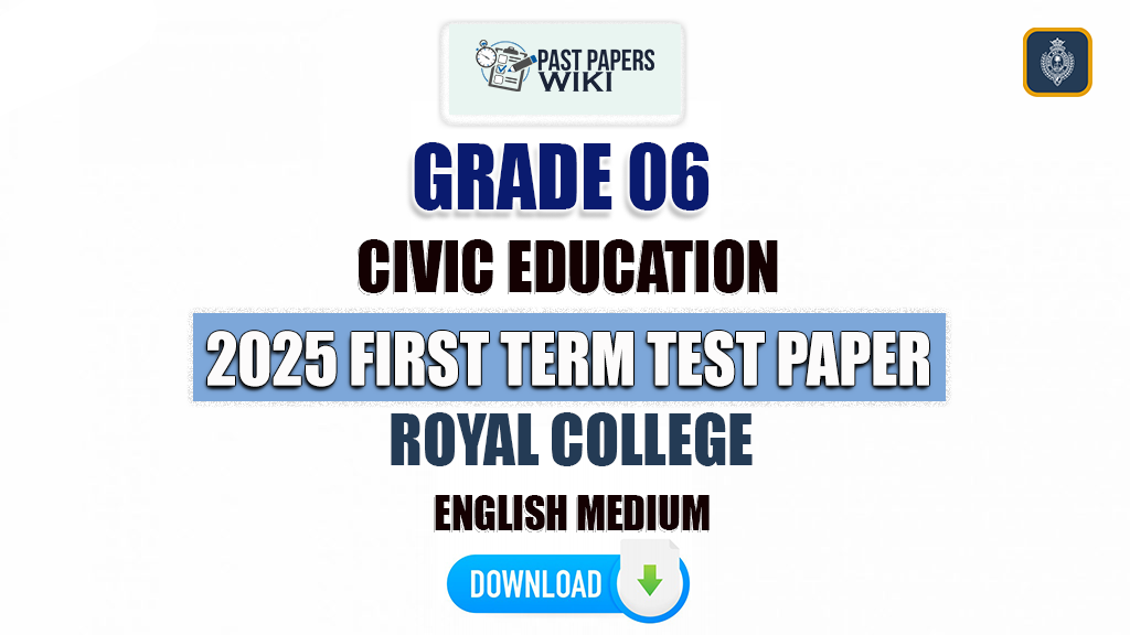 Download Colombo Royal College Grade 06 First term test Civic Education paper 2025 in English medium. Royal College Grade 06 English medium papers are available in PDF format. We have added many previous Royal College Term Test Papers and answers to this website for you. You can download it using the links given below.