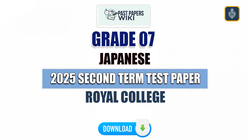 Download Colombo Royal College Grade 07 Second term test Japanese paper 2025. Royal College Grade 07 papers are available in PDF format. We have added many previous Royal College Term Test Papers and answers to this website for you. You can download it using the links given below.